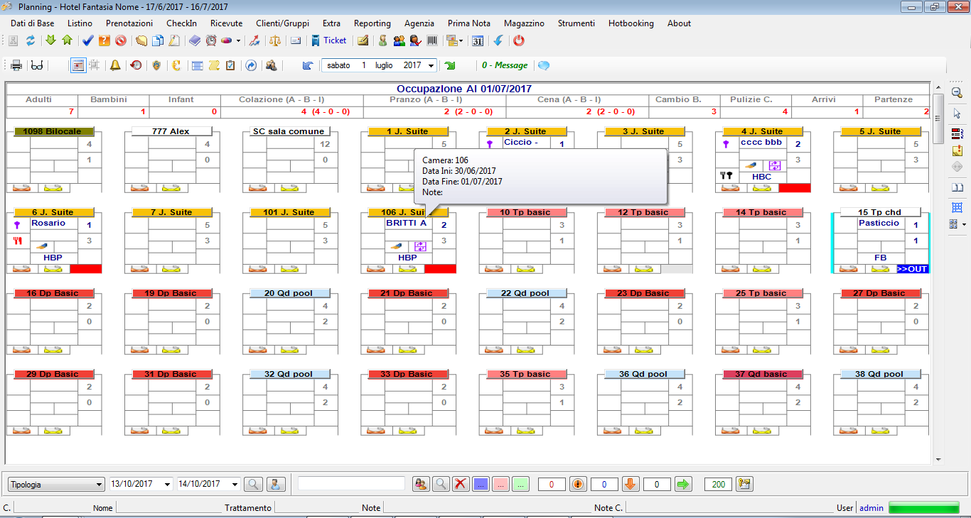 E’ un gestionale alberghiero multistruttura, utilizzabile sia da singoli hotel che da catene alberghiere e tour operator. Permette di gestisce il flusso ricettivo a partire dal preventivo e sino al checkout e comprende l’ invio di regole di cancellazione, di foglio notizie e di voucher. Il check-in online è completamente automatizzato e la prima nota è perfettamente integrata. E’ inoltre possibile richiedere l’attivazione di un planning grafico multi struttura.